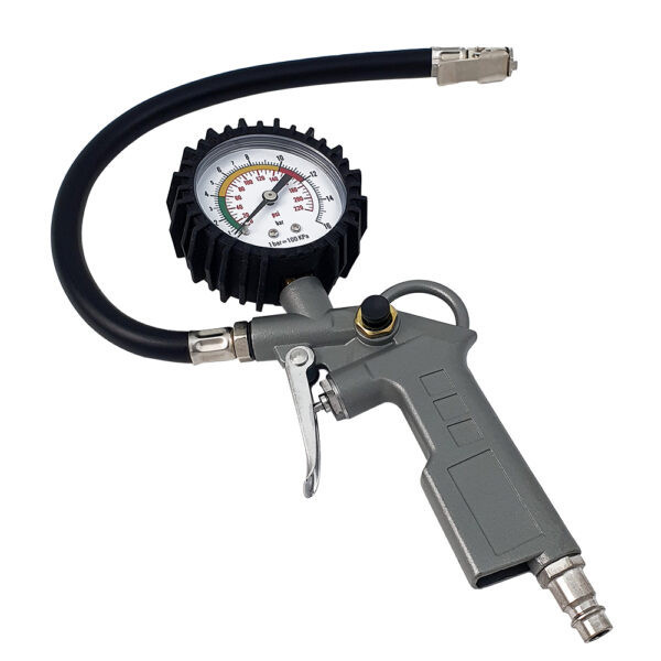 Пистолет для подкачки с манометром — это профессиональный пневмоинструмент, созданный специально для точного измерения и регулировки давления в шинах легковых автомобилей, грузового транспорта, мотоциклов или оборудования на колесах. Встроенный манометр обеспечивает быстрый контроль давления, а удобно расположенная спусковая кнопка позволяет точно его скорректировать.