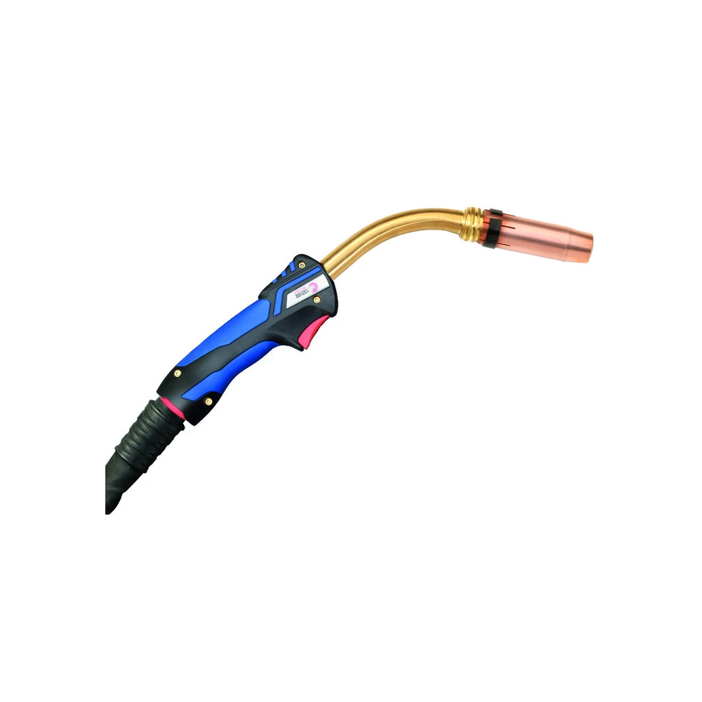 Серія MB EVO PRO — концептуально новий підхід у проєктуванні пальників, що поєднує інноваційні ідеї з акцентом на міцність конструкції. Пальник витримує жорсткі умови роботи завдяки підвищеній стійкості руків’я до механічних навантажень. Ретельно опрацьовані вузли забезпечують надійність і довговічність у використанні. Гармонійна взаємодія всіх компонентів — форма руків’я, розташування кнопки керування, шарнірне під’єднання — створює збалансований, міцний і довговічний інструмент для напівавтоматичного зварювання.
